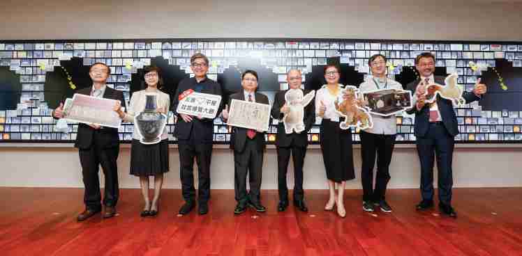 银河集团携手创利空间为故宫建置的智慧文物互动导览墙及轮播墙,,,,今日正式启用。。(左四:银河集团新事业暨投资管理总部副总经理杨本豫、、、、右四:故宫博物院院长吴密察、、右三:太极影音董事长黄宝云)